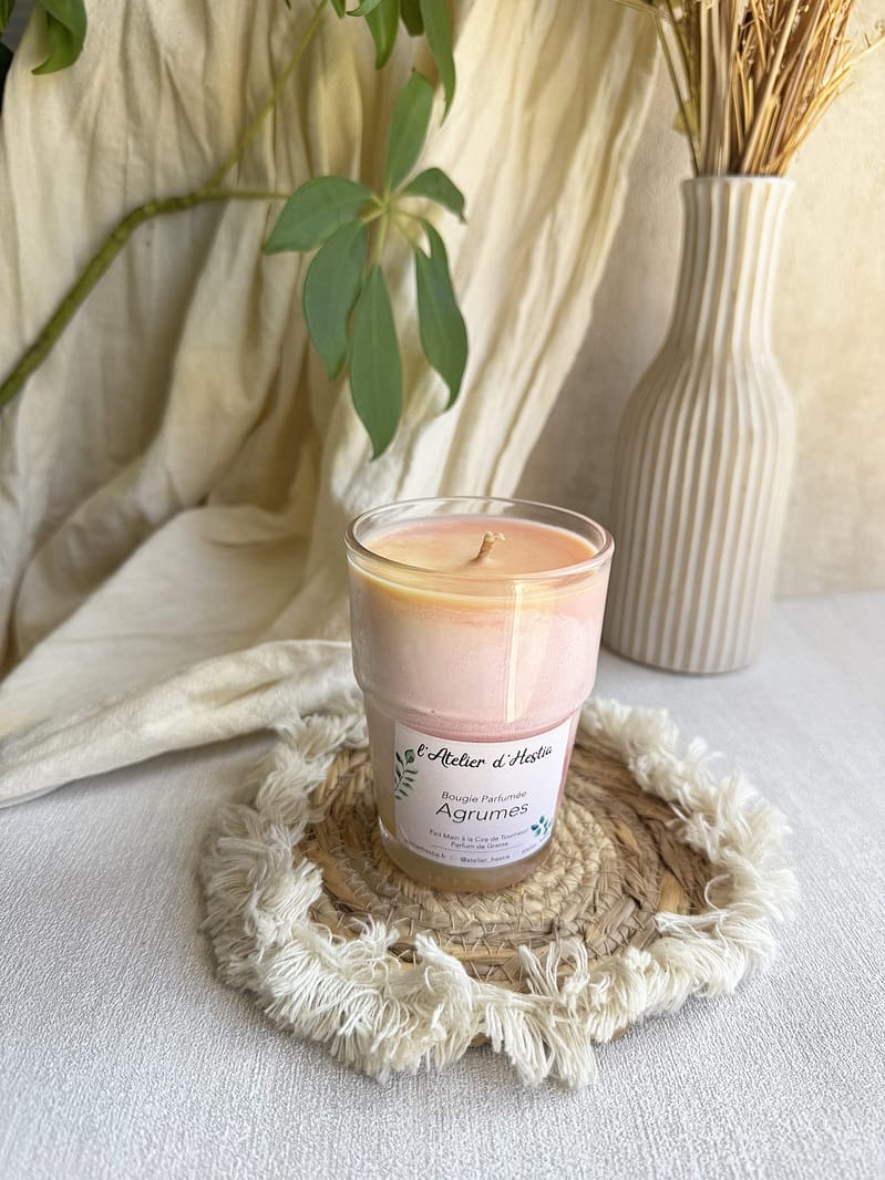 Cette bougie à la cire de tournesol végétale, coulée à la main avec soin, dévoile un parfum pétillant et lumineux d’agrumes, issu des parfumeries de Grasse. Ses notes d’orange, de citron et de pamplemousse forment un accord vif et rafraîchissant, idéal pour insuffler une ambiance énergisante et ensoleillée à votre intérieur. Sa combustion lente et propre assure une diffusion optimale de la fragrance, révélant tout le savoir-faire artisanal et la qualité des matières premières utilisées. La Bougie Agrumes est parfaite pour illuminer vos journées, réveiller vos sens et apporter une touche de fraîcheur naturelle à chaque pièce de la maison.