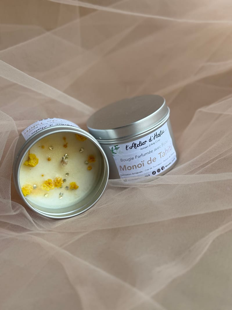 Chez L’Atelier d’Hestia, chaque création parfumée est pensée pour transformer les moments du quotidien en véritables instants d’évasion. La bougie bijou Monoï de Tahiti incarne parfaitement cette philosophie en associant parfum solaire et surprise élégante.