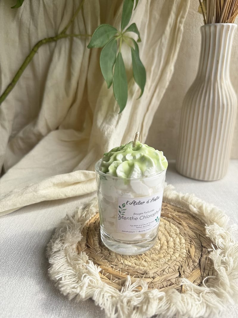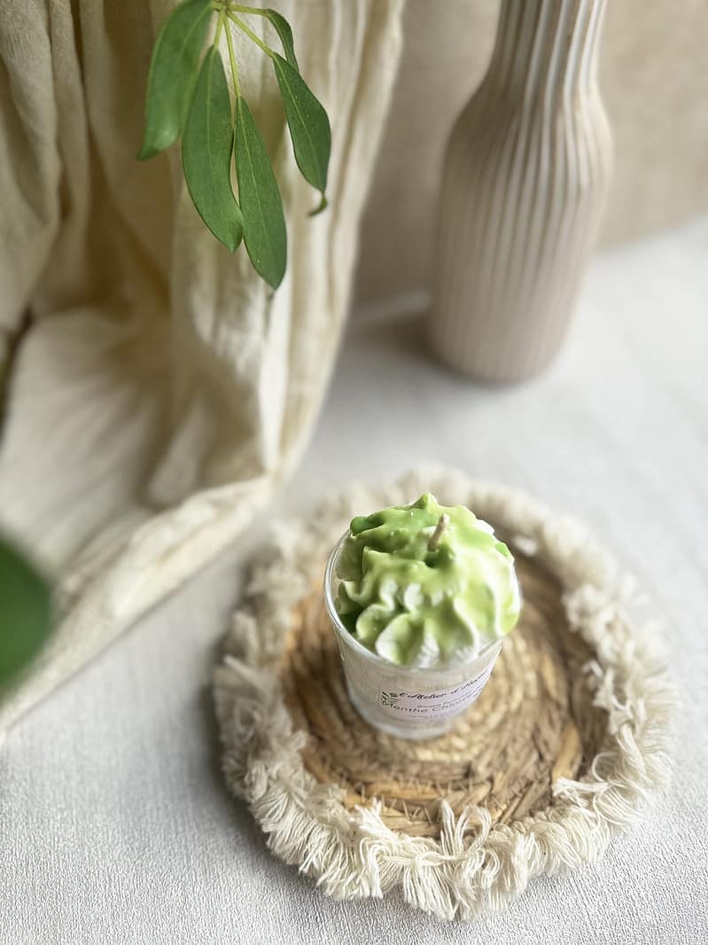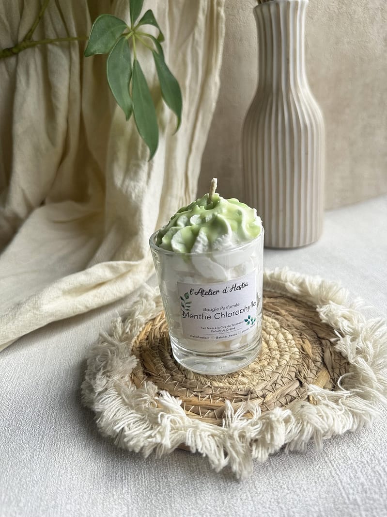 Cette bougie Menthe Chlorophylle artisanale à la cire de tournesol diffuse un parfum frais, végétal et vivifiant, rappelant le souffle pur d’un jardin au petit matin. Élaborée avec un parfum de Grasse, elle marie la fraîcheur de la menthe à la douceur verte et légèrement sucrée de la chlorophylle, pour une senteur revigorante et apaisante. Dès l’allumage, elle purifie l’ambiance et apporte une sensation de propreté et de légèreté. Coulée à la main avec soin, cette bougie Menthe Chlorophylle de qualité est parfaite pour rafraîchir un intérieur, favoriser la concentration ou accompagner une séance de relaxation. Une bouffée d’air frais dans votre quotidien.