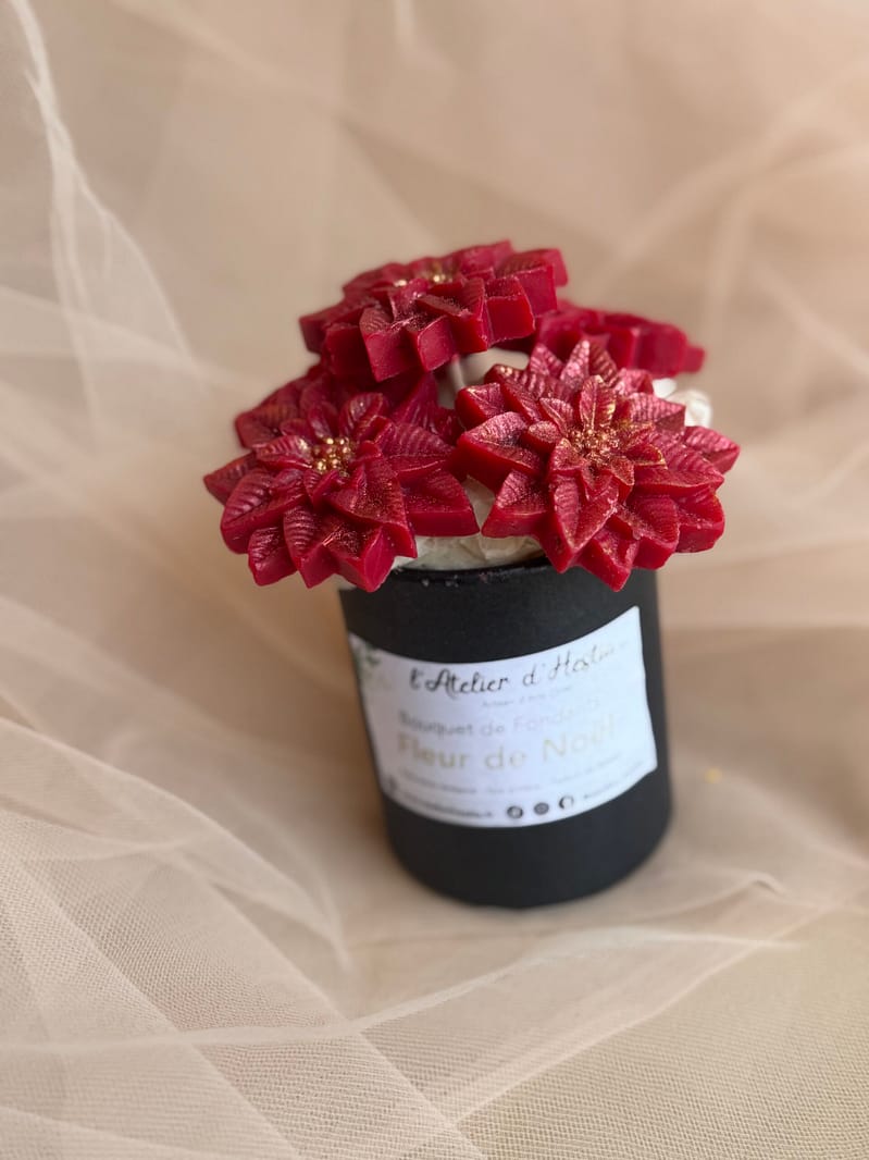 Chez L’Atelier d’Hestia, chaque création est pensée pour sublimer les moments du quotidien et les instants précieux. La composition florale de fondants Fleur de Noël incarne parfaitement cette vision : une création chaleureuse, festive et élégante, conçue pour célébrer la magie de l’hiver.