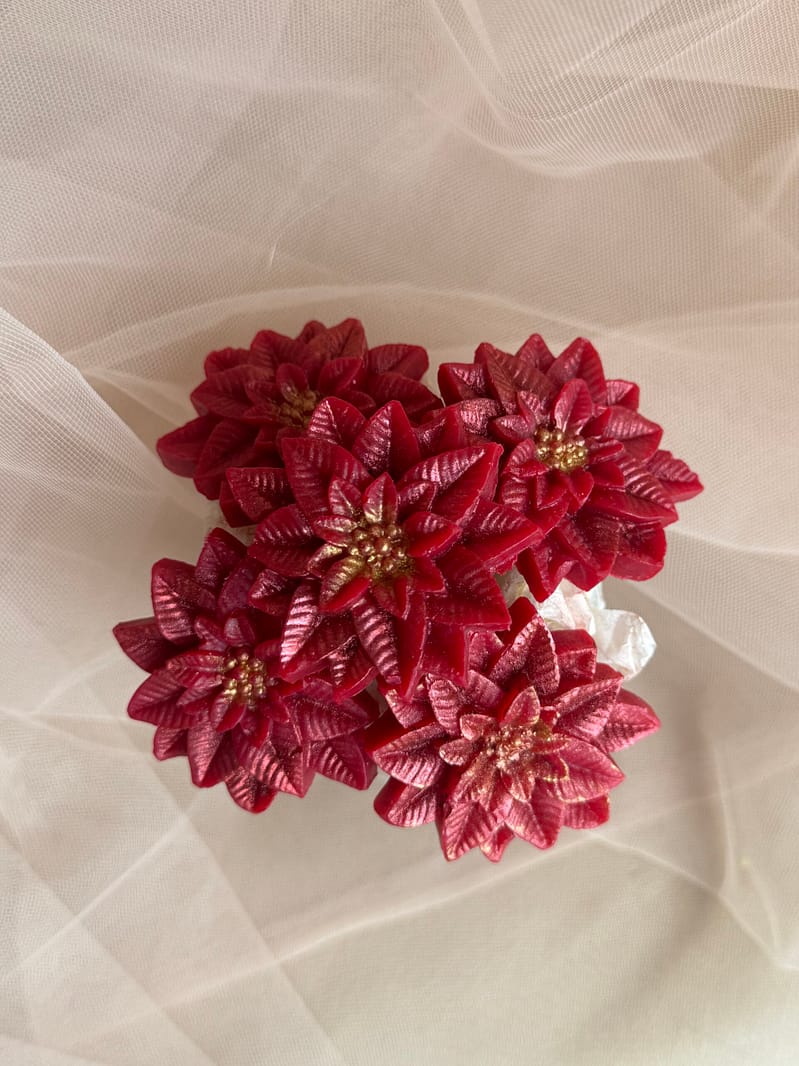 La composition florale de fondants Fleur de Noël est une création artisanale pensée pour capturer toute la magie des fêtes de fin d’année. À la fois décorative et parfumée, elle associe l’élégance d’une composition florale à la douceur réconfortante des fondants parfumés. Cette création évoque l’atmosphère chaleureuse de Noël, les intérieurs décorés avec soin, les moments de partage et la convivialité de l’hiver.