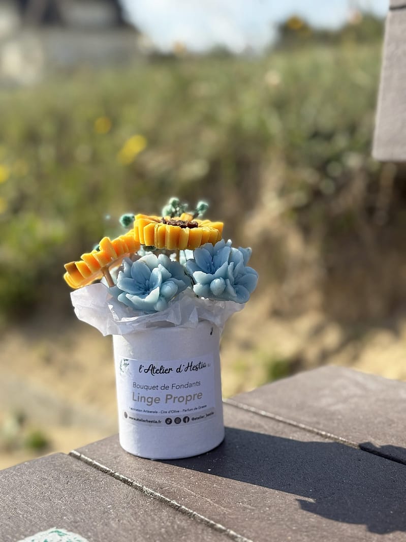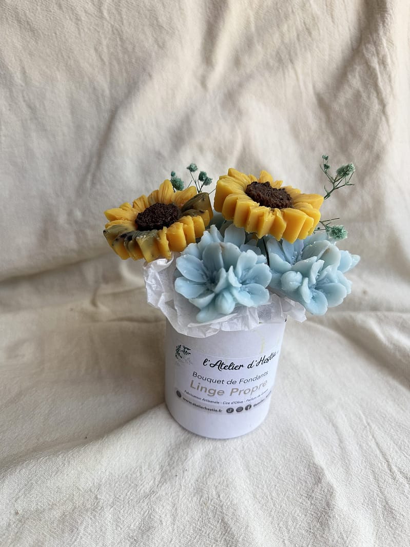 Chez L’Atelier d’Hestia, chaque création est pensée pour transformer les gestes du quotidien en moments de douceur et de bien-être. La composition florale de fondants Linge Propre incarne parfaitement cette vision : une création propre, délicate et apaisante, conçue pour parfumer et embellir votre intérieur.