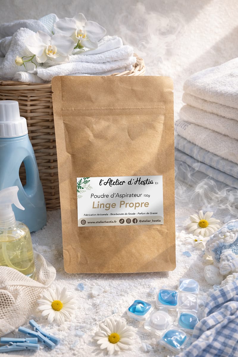 ❤️ La poudre d’aspirateur parfum linge propre signée L’Atelier d’Hestia
