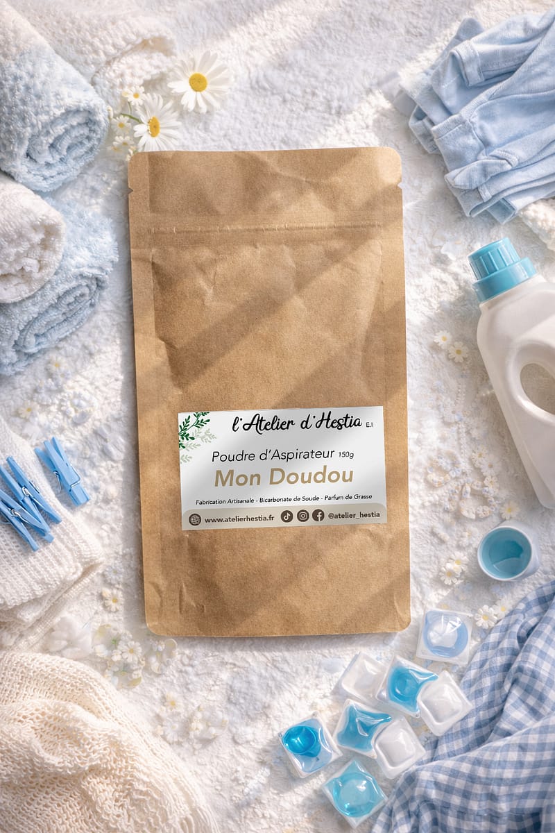Chez L’Atelier d’Hestia, chaque création est pensée pour apporter douceur et bien-être au quotidien. La poudre d’aspirateur parfum mon doudou incarne parfaitement cet esprit cocooning, en alliant efficacité, tendresse olfactive et plaisir d’utilisation.